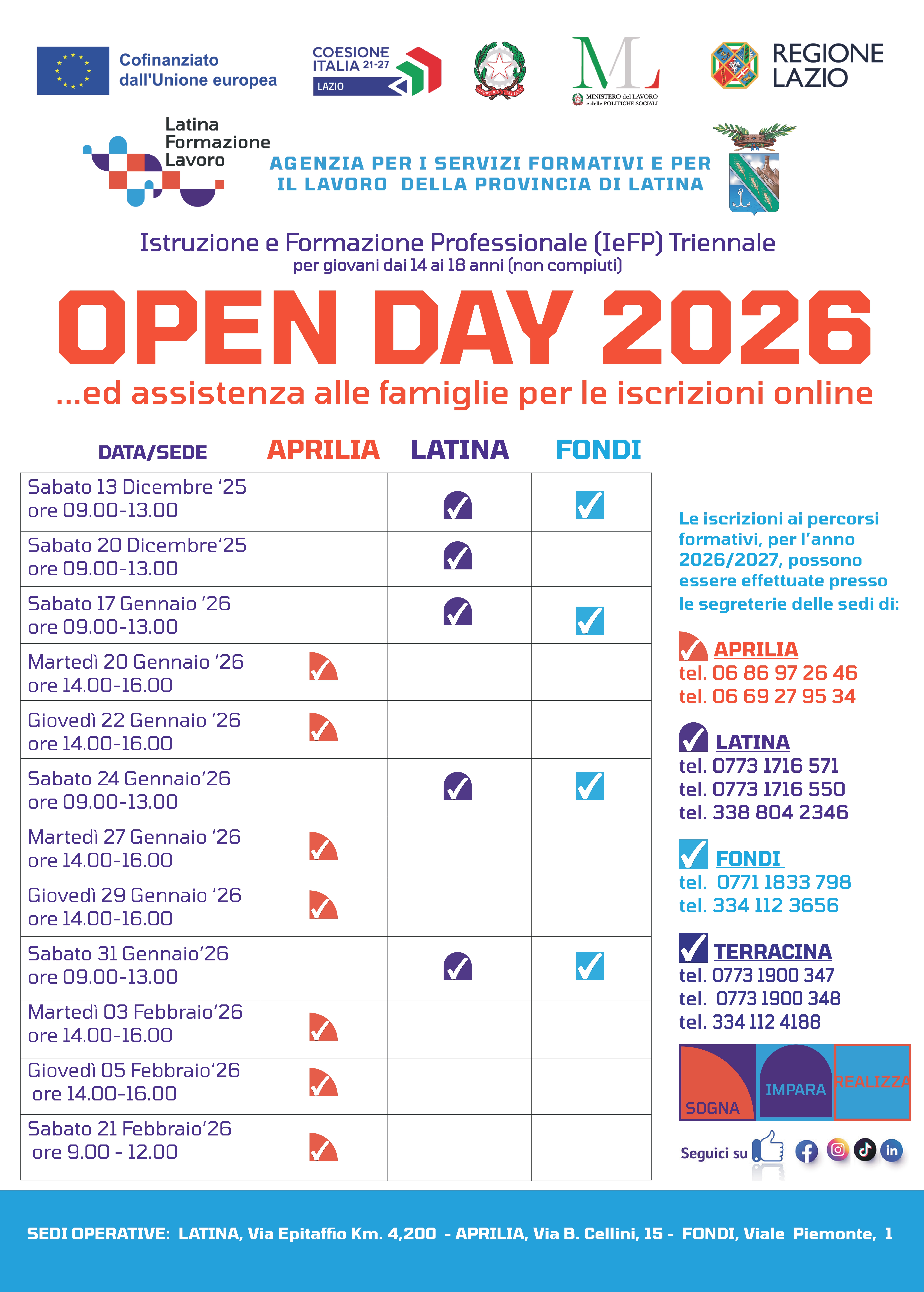 Open day – Vi aspettiamo presso le nostre sedi dal 13 dicembre 2025 al 21 febbraio 2026 !!
